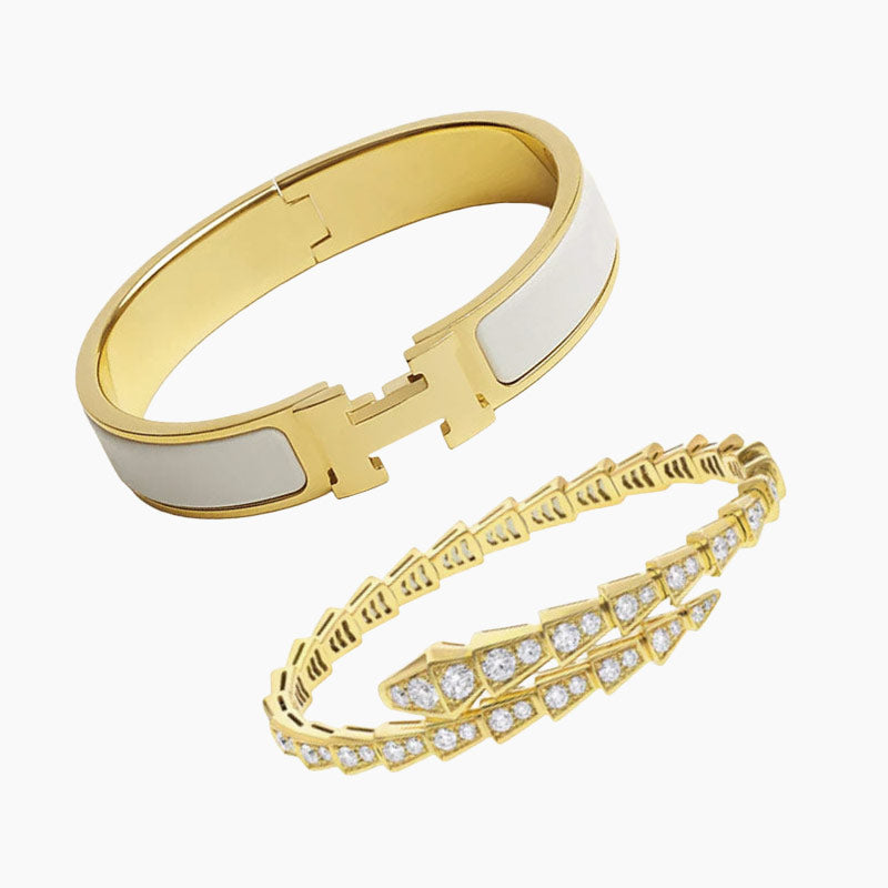 - Serpent Armbånd: Slangeinspirert design dekorert med glitrende steiner, gir dristig luksus og en sterk kant (én størrelse).